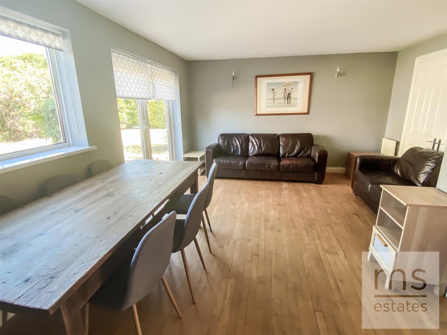 - Large living/dining space with patio doors to garden