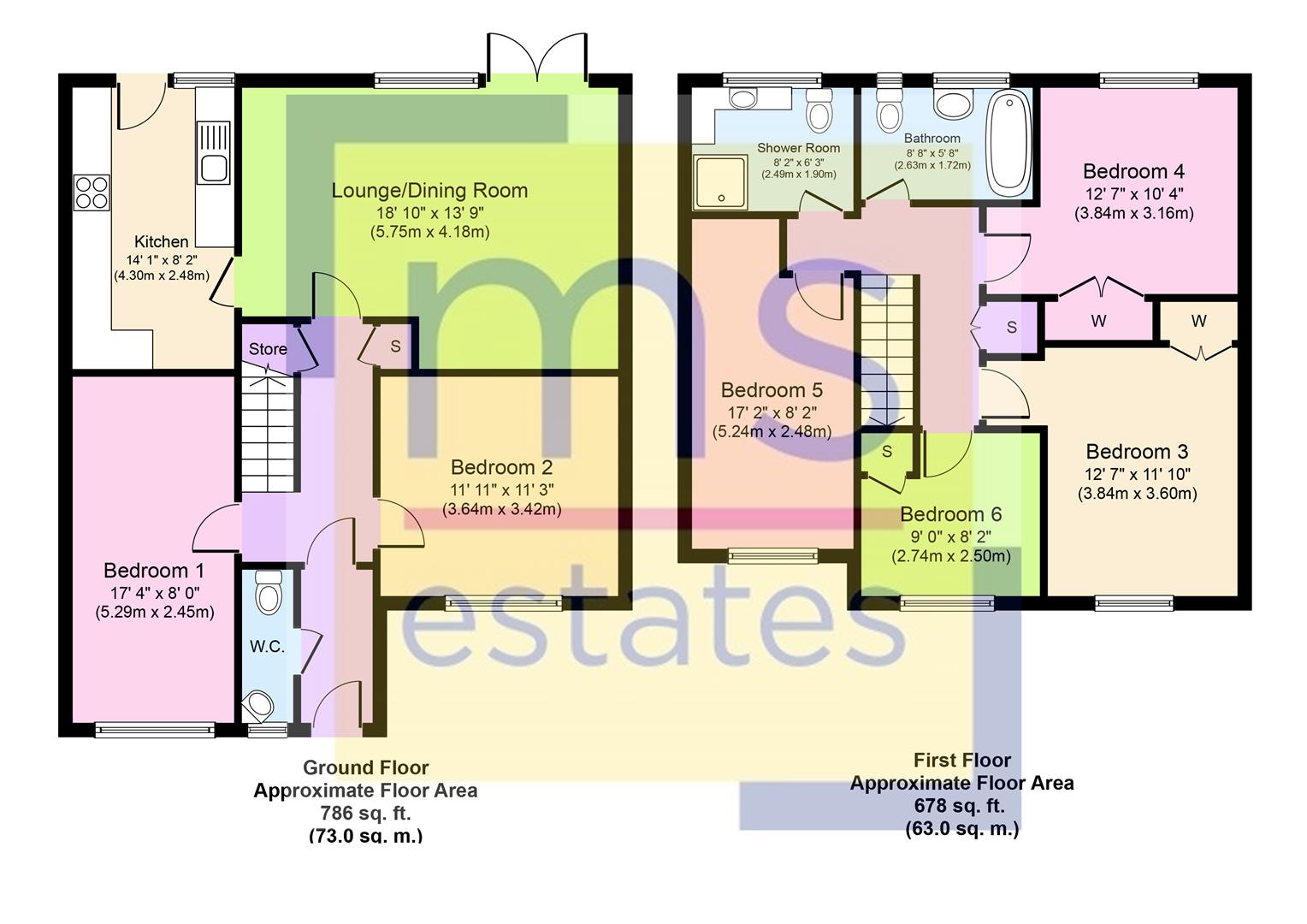 5 bedrooms, 2 bathrooms, 2 receptions
